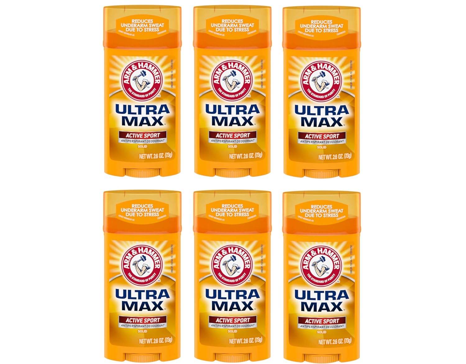Arm & Hammer Ultramax Active Sport Antiperspirant Deodorant Solid, 2.6oz - Pack of 6
