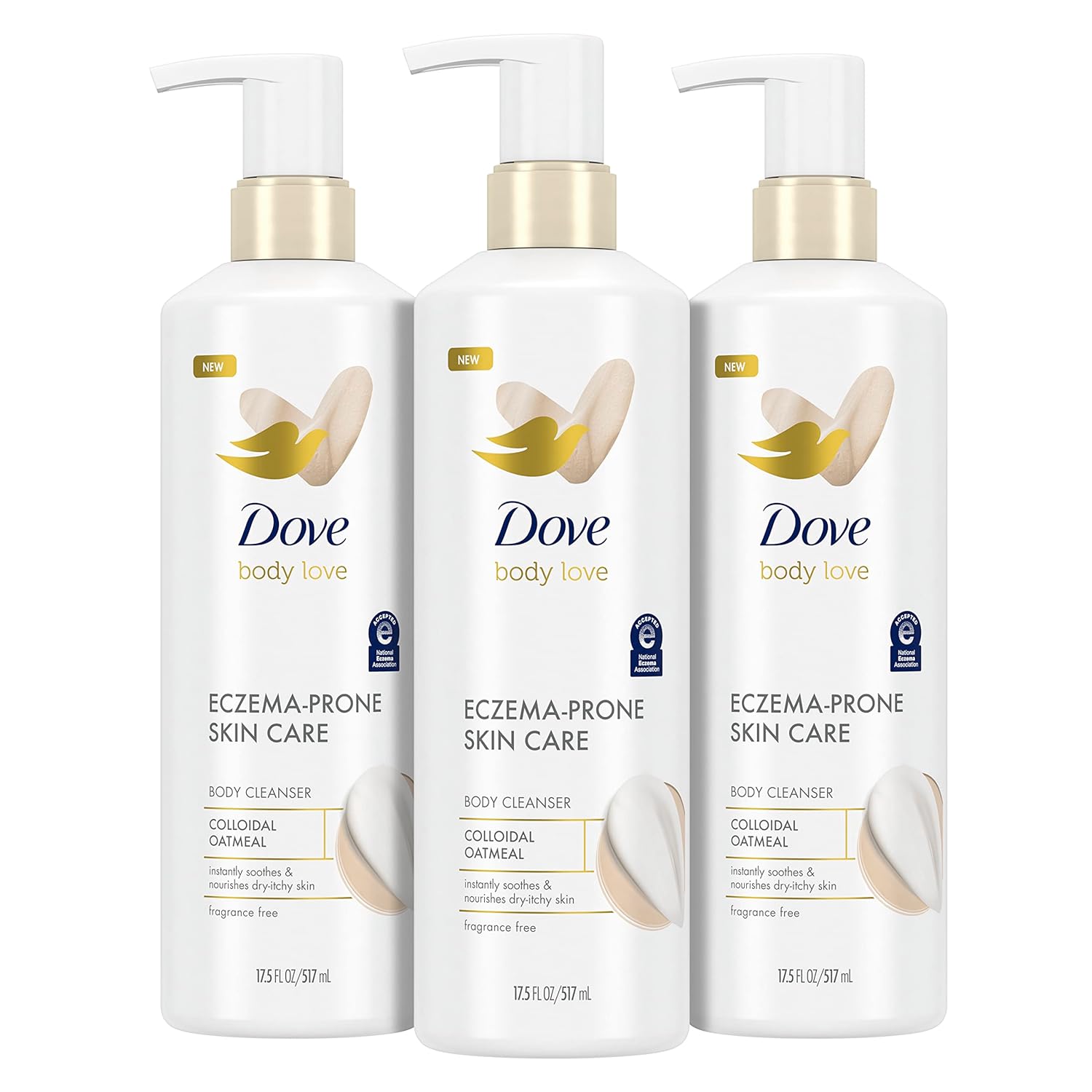 Dove Body Love Body Cleanser Eczema-Prone Skin Care Colloidal Oatmeal 3 Count Fragrance Free Body Wash Instantly Soothes & Nourishes Dry-Itchy Skin 17.5 FO
