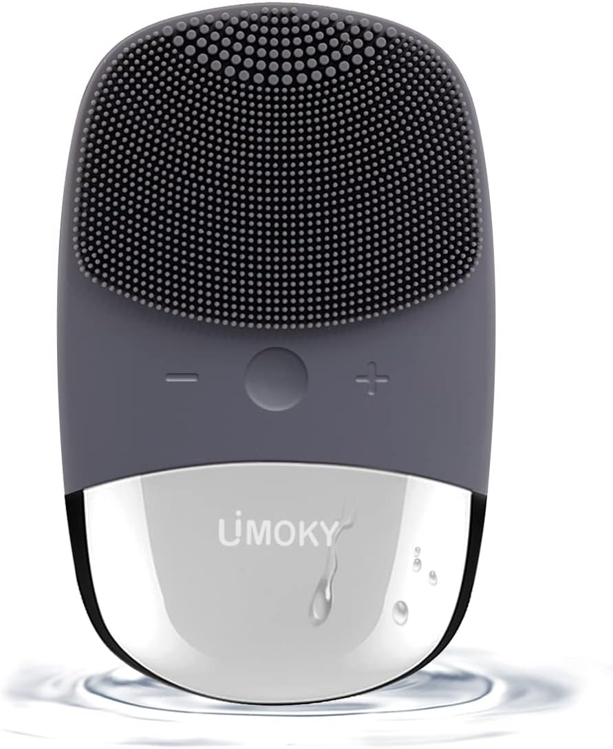 Facial Cleansing Brush, 3-in-1 Electric Silicone Face Scrubber, Vibrating Massager, IPX7 Waterproof, USB Rechargeble Brush for Deep Cleanning, Blackhead Remover, Exfoliating (Gray)