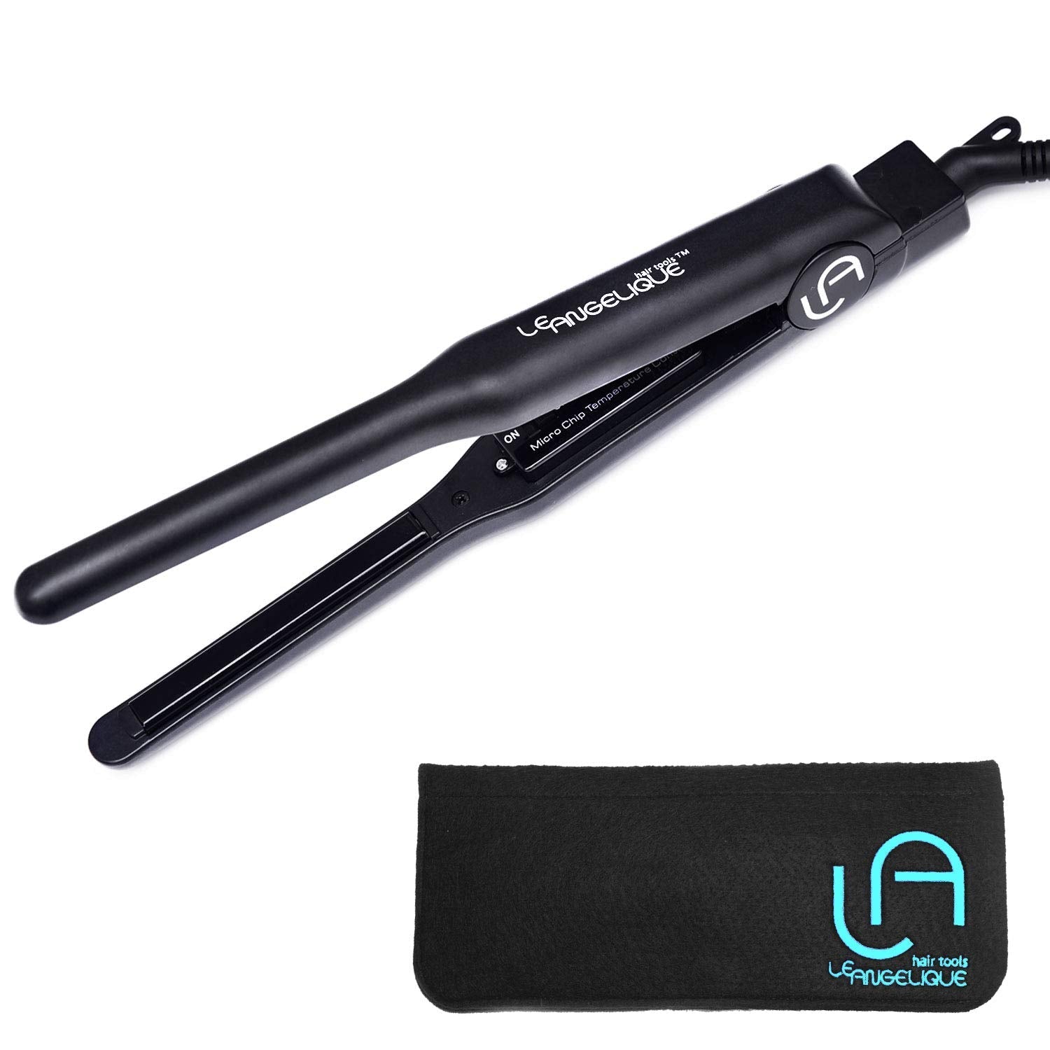 Le Angelique HummingBird 1/4 Inch Thin Flat Iron for Short Hair & Edge Control - Tiny Mini Hair Straightener - 450F Tourmaline & Ceramic Small Pencil Plates + Heat Resistant Travel Pouch/Mat Included