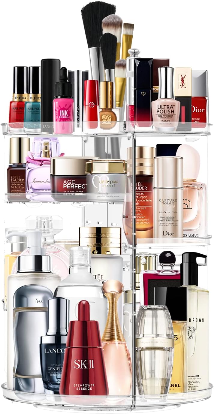360¡ rotatable base and 7 layers of adjustable trays. Let you quickly find what you need and get it by rotating the organizer.