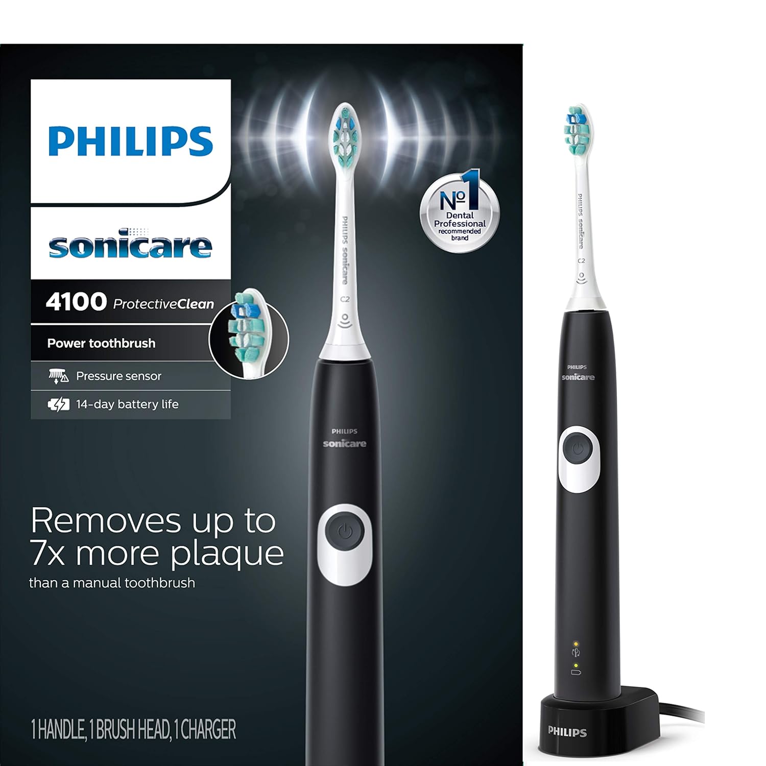 Philips Sonicare ProtectiveClean 4100 Rechargeable Electric Power Toothbrush, Black, HX6810/50