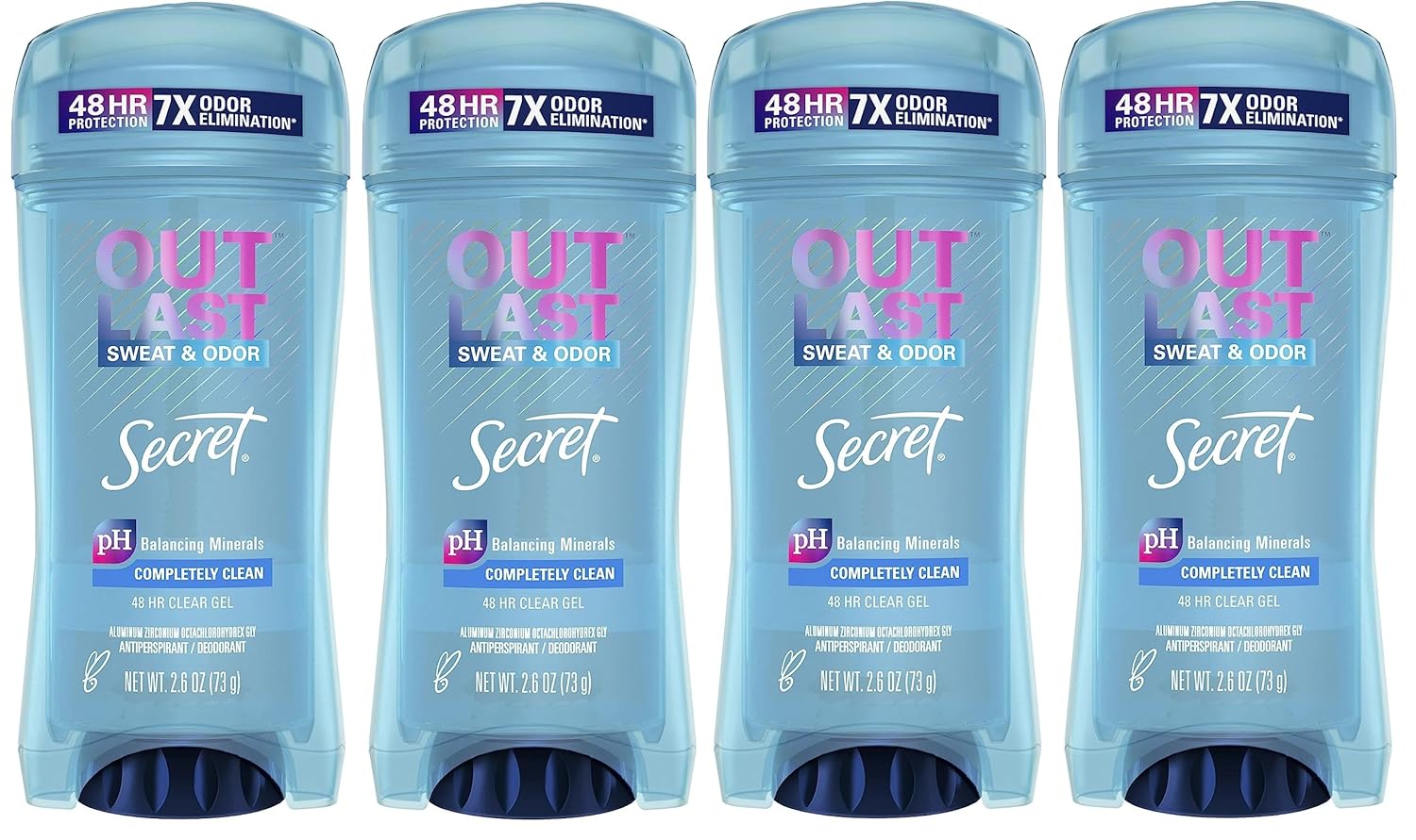 Secret Outlast Clear Gel Antiperspirant Deodorant for Women, Completely Clean, 2.6 oz (Pack of 4)